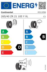 Il SportContact 6 265/40 ZR21 105Y possiede un'eccezionale aderenza e permette di guidare vetture turismo e auto sportive di alta gamma in modo più facile. Possiede una buona stabilità e una tenuta di strada perfetta. Il "Black Chili" unisce la massima aderenza ad una guida piacevole. "L'Aralon350" è un nuovo componente del battistrada creato da Continental per fornire maggiore stabilità fino a 350 km/h.